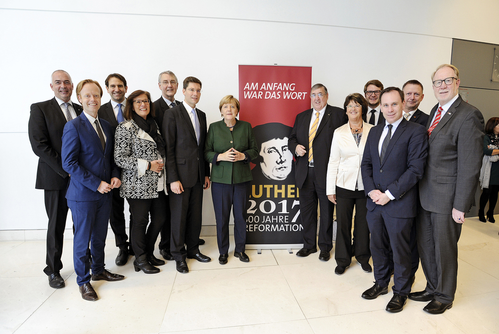 BERLIN. Bundestagsabgeordnete, die Wahlkreise mit Stätten der Reformation vertreten, sind gestern symbolisch mit Bundeskanzlerin Merkel im Reichstagsgebäude des Deutschen Bundestages zusammengekommen. Als Vertreter von Nordsachsen hat der Bundestagsabgeordnete Marian Wendt daran teilgenommen. Durch ein gemeinsames Bild mit der Bundeskanzlerin (anbei) wollen die Bundestagsabgeordneten ein Zeichen für die durch alle geteilte Wertschätzung des Reformationsjubiläums und die vorausgehende Lutherdekade setzen.